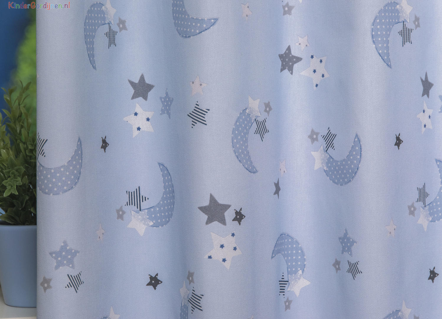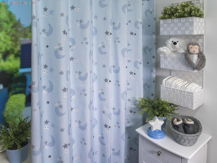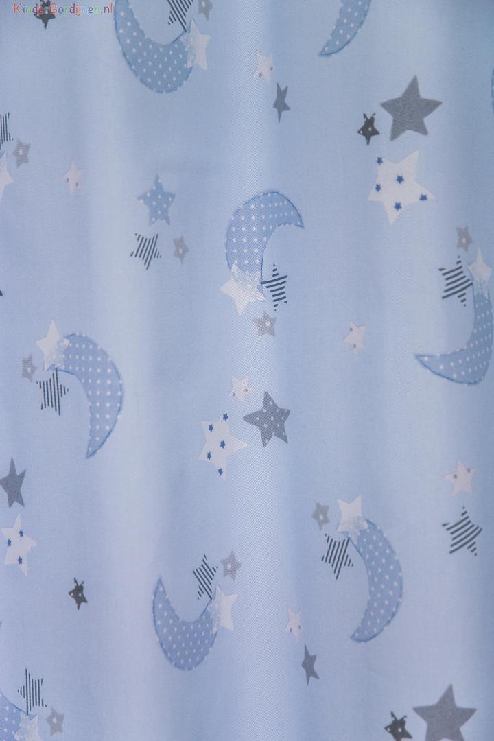 Wat een schitterende kwaliteit gordijnstof! Zien is geloven, zo mooi soepel geweven én maar liefst 280 cm breed! Dat betekent dat het babykamer gordijn meestal naadloos kan worden gemaakt. De is print is gedrukt op een heel fijn geribde stof, wat een vlotte & sportieve uitstraling geeft. Het sterretjes & maantjes patroon is leverbaar in 3 verschillende ondergrondkleuren. Eigentijds blauw- grijs voor de jongenskamer, pastel roze - grijs voor meisjes slaapkamer en camel grijs voor als je liever geheim wilt houden welk lief kleintje er komt slapen. De maan is hier 7 cm groot en samen met de sterren ernaast 9 cm breed. Door het rustig herhalende patroon kan je dit gordijn uitstekend tot de grond laten confectioneren. Wanneer je graag extra verduistering wenst dan optie voeren aanvinken in het bestelproces. Kortom, deze fraaie stofserie is een aanwinst binnen onze enorme collectie!