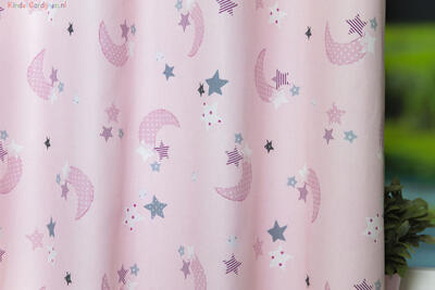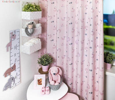 Wat een schitterende kwaliteit gordijnstof! Zien is geloven, zo mooi soepel geweven én maar liefst 280 cm breed! Dat betekent dat het babykamer gordijn meestal naadloos kan worden gemaakt. De is print is gedrukt op een heel fijn geribde stof, wat een vlotte & sportieve uitstraling geeft. Het sterretjes & maantjes patroon is leverbaar in 3 verschillende ondergrondkleuren. Eigentijds blauw- grijs voor de jongenskamer, pastel roze - grijs voor meisjes slaapkamer en camel – grijs voor als je liever geheim wilt houden welk lief kleintje er komt slapen. De maan is hier 7 cm groot en samen met de sterren ernaast 9 cm breed. Door het rustig herhalende patroon kan je dit gordijn uitstekend tot de grond laten confectioneren. Wanneer je graag extra verduistering wenst dan optie voeren aanvinken in het bestelproces. Kortom, deze fraaie stofserie is een aanwinst binnen onze enorme collectie!