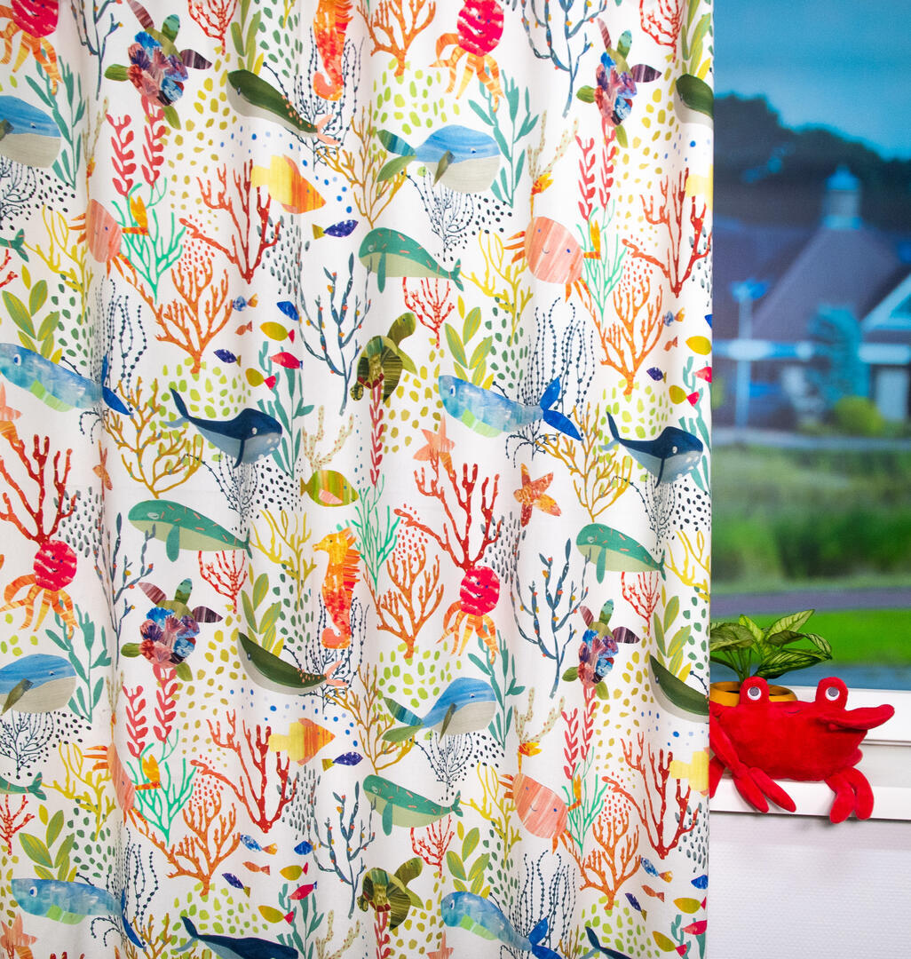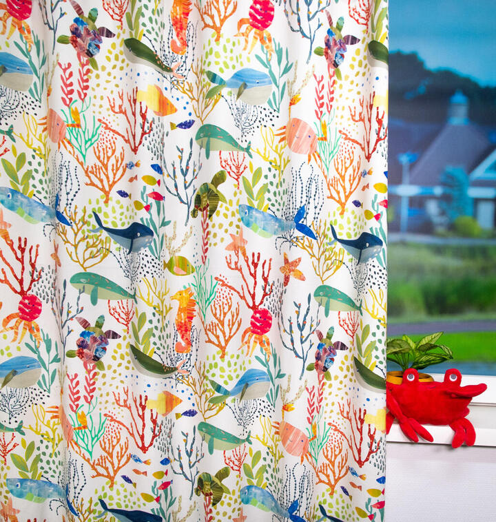 Een prachtig gordijn voor je raam! Als jij je eigen gordijnen kiest, wordt het helemaal jouw kamer. Deze gordijnstof met de naam Bubbles is gemaakt van de beste materialen waardoor het gordijn mooi in de plooi valt. Het aantal te gebruiken banen gordijnstof van 140 cm breed wordt door ons vakkundig aan elkaar geconfectioneerd zodat het waterdieren patroon van 68 cm mooi doorloopt. Laat voor een aangename isolatie en extra verduistering de gordijnen voeren: een verschil van dag en nacht!