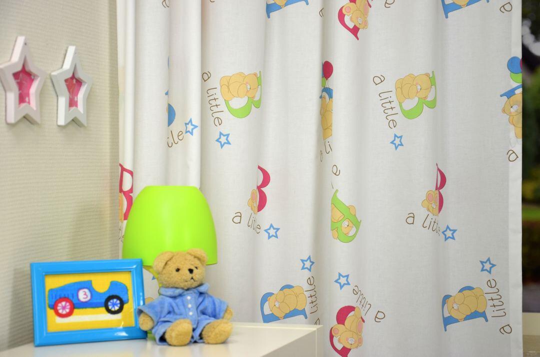 Met deze lieve knuffelbeertjes op de gordijnen doezelt uw zoontje of dochtertje heerlijk weg. Het vertederende patroon creëert een rustgevende sfeer in de baby- of kinderkamer.