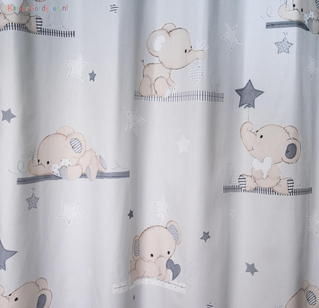Wat een schitterende kwaliteit gordijnstof! Zien is geloven, zo mooi soepel geweven én maar liefst 280 cm breed! Dat betekent dat het babykamer gordijn meestal naadloos kan worden gemaakt. De schattige beren print is gedrukt op een heel fijn geribde stof, wat een vlotte sportieve uitstraling geeft. De olifantjes zijn op de voorzijde gedrukt, maar liefst 22 cm groot en leverbaar in 3 verschillende ondergrond kleuren. Eigentijds vergrijsd blauw voor de jongenskamer, pastel roze voor meisjes slaapkamer en warm zachtgrijs voor als je liever geheim wilt houden welk lief kleintje er komt slapen. Door de royale print kun je het gordijn uitstekend tot de grond laten confectioneren. Wanneer je extra verduistering wenst, graag optie voeren aanvinken in het bestelproces. Kortom, deze fraaie stofserie is een aanwinst binnen onze enorme collectie! ~Have a happy elephants day