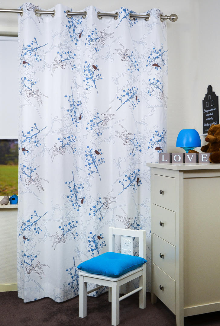 Bambi, het kleine hertje, maakt in z'n eerste jaren kennis met alles wat los en vast zit in het grote woud waarin hij samen zijn vrienden woont en vele avonturen beleeft. Bambi straalt nu op deze prachtige gordijnstof, exclusief verkrijgbaar bij KinderGordijnen.nl en binnen 1 week op maat geleverd. De stof kan prima worden gevoerd met een verduisterende voering, deze optie komt u tegen tijdens het bestelproces. TIP: Bestel eerst een knipstaal/sample, zo kunt u zelf de kleur en kwaliteit ervaren.