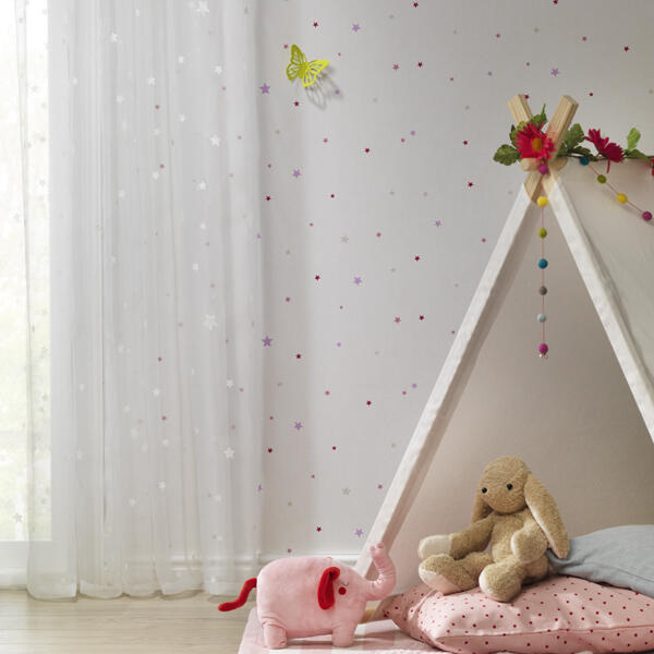 Subtiele sterren sieren deze voile! Zo luchtig als organza, waardoor de inkijk net wordt weggenomen en de lichtinval optimaal blijft. De transparant waaiert héérlijk voor het open raam, als in de film. Ook met sterren op het doek, maar vast niet zo tijdloos en luchtig als deze twinkel sterretjes! Het thema kan natuurlijk voor de meisjes- en jongenskamer. Misschien ook nog een wand met sterren behang?