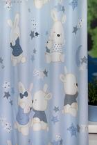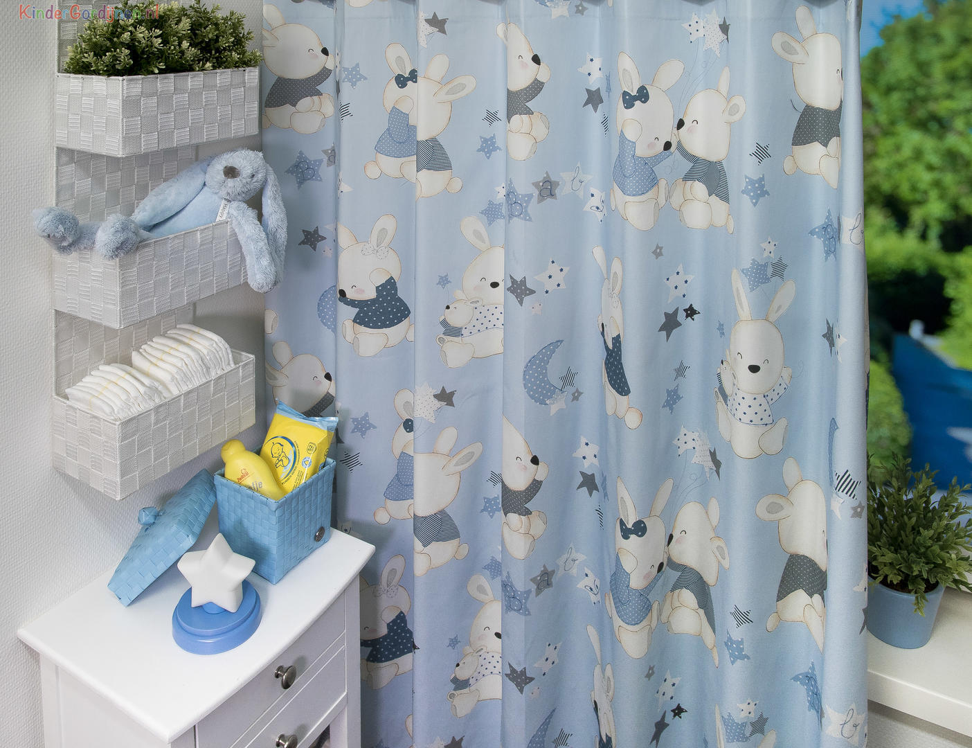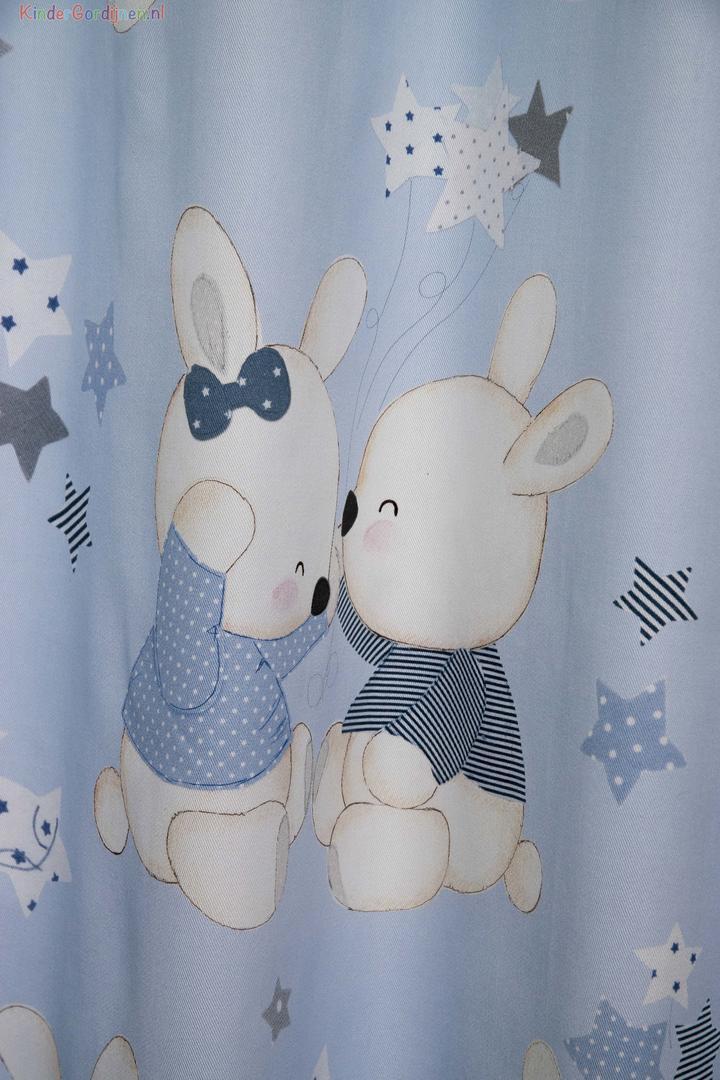 Wat een schitterende kwaliteit gordijnstof! Zien is geloven, zo mooi soepel geweven én maar liefst 280 cm breed! Dat betekent dat het babykamer gordijn meestal naadloos kan worden gemaakt. De schattige konijnen print is gedrukt op een heel fijn geribde stof, wat een vlotte sportieve uitstraling geeft. De babykonijntjes zijn op de voorzijde gedrukt, maar liefst 30 cm groot en leverbaar in 3 verschillende ondergrond kleuren. Eigentijds vergrijsd blauw voor de jongenskamer, pastel roze voor meisjes slaapkamer en warm camel-grijs voor als je liever geheim wilt houden welk lief kleintje er komt slapen. Door de royale print kun je het gordijn uitstekend tot de grond laten confectioneren. Wanneer je extra verduistering wenst, graag optie voeren aanvinken in het bestelproces. Kortom, deze fraaie stofserie is een aanwinst binnen onze enorme collectie!