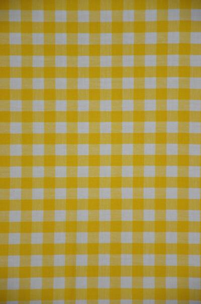 Dit overgordijn met neutraal ruitmotief is leverbaar in veertien verschillende kleuren. De ruit is ongeveer 1,5 centimeter.