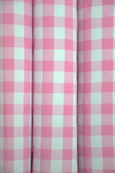 Dit overgordijn met neutraal ruitmotief is leverbaar in veertien verschillende kleuren. De ruit is ongeveer 2 cm..
