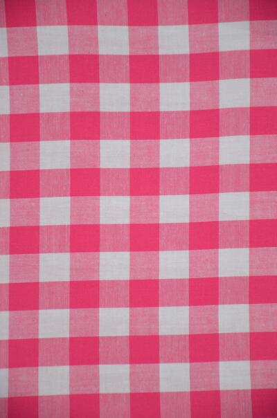 Dit overgordijn met neutraal ruitmotief is leverbaar in veertien verschillende kleuren. De ruit is ongeveer 2 cm..