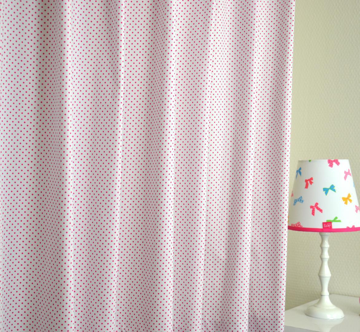 Uniek door z'n eenvoud, Dit gordijn met witte stippen is beschikbaar in verschillende vrolijke kleuren.