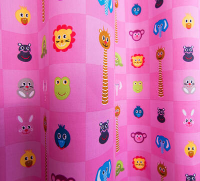 Wat een vrolijke dieren kijken naar jou! Het lijkt bijna alsof zij willen zeggen: “Welkom op je slaapkamer.” De beestjes zijn gedrukt in de vierkanten van 6 x 6 cm. De turquoise kleur kan zowel voor de meisjes- als jongenskamer. Ook leverbaar in drie andere vrolijke kleuren, allemaal even sprankelend en lief. Ook leverbaar als vouwgordijn.