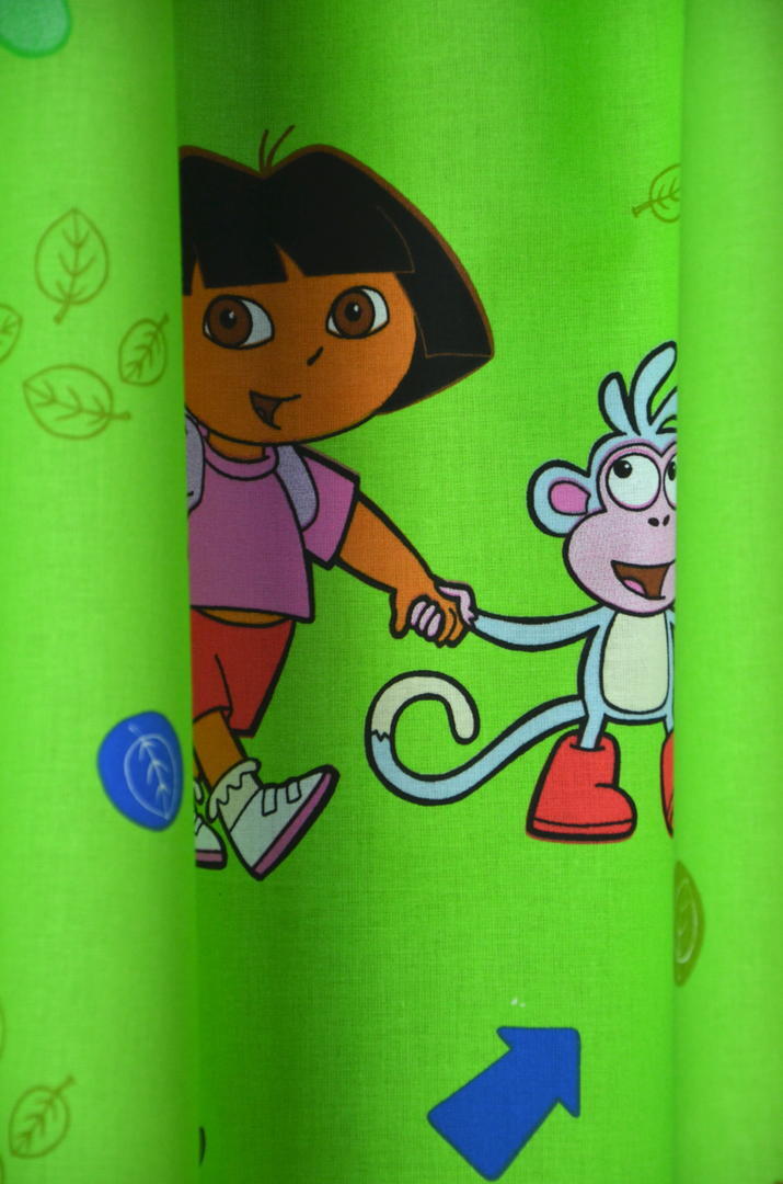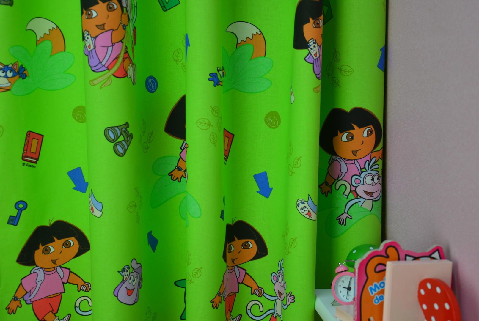 Wie kent Dora de Explorer niet? Samen met Boots, Rugzak, Kaart en Zwieber de Vos gingen ze het ene naar het andere avontuur tegemoet. Op dit kindergordijn zijn ze in de jungle. Heel erg mooi voor de avontuurlijke jongens en meisjeskamers. Het kindergordijn is gemaakt van 100% katoen en hierdoor valt hij lekker soepel en is hij lekker zacht. Deze mooie kleur groen staat heel mooi in een neutrale witte kamer. Wil je hem nu eerst een keer voelen en zien dan kun je een knipstaal kopen en dan kun je het zelf voelen en zien.