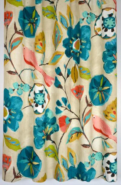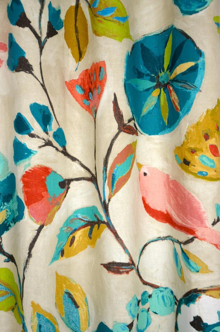 Een gordijn als schilderij, zó KUNSTZINNIG! Er is gebruik gemaakt van zomerse kleuren en motieven aangebracht in penseelstreken. De stof heeft een fraaie linnen uitstraling en is aan de voorzijde met het patroon bedrukt. Linnen valt nonchalant en kan voor verduistering en kleurbehoud uitstekend gevoerd worden. Echt een stijlvol effect voor HAPPY GIRLS!