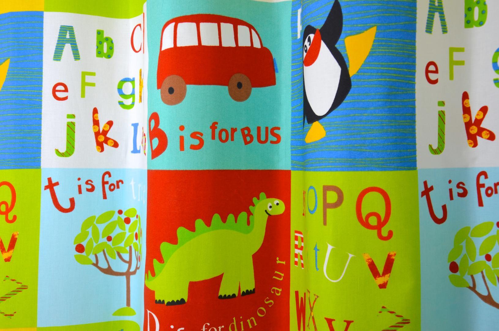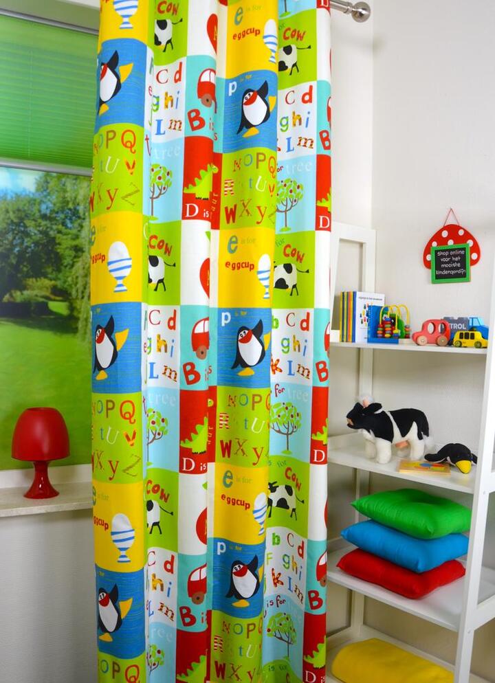 Wat een vrolijke gordijnen en nog leerzaam ook! Spelenderwijs het alfabet leren en misschien kun je zelf ook woorden bedenken met de afgebeelde letters? De lichtdoorlatende stof is in 2 kleuren leverbaar, waardoor het gordijn voor zowel jongens als meisjes geschikt is. De ruime blokken zijn 21 cm hoog waardoor de gordijnen uitstekend tot de grond gemaakt kunnen worden. Voor het verduisterende effect kunt u de stof laten voeren.