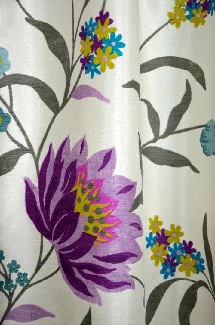 De Mills gordijnen bevatten een uitgesproken bloemenprint op structuur gordijnstof. De onregelmatige garens geven de look van wilde zijde. De bloemprint is aan de achterzijde van de stof licht zichtbaar.