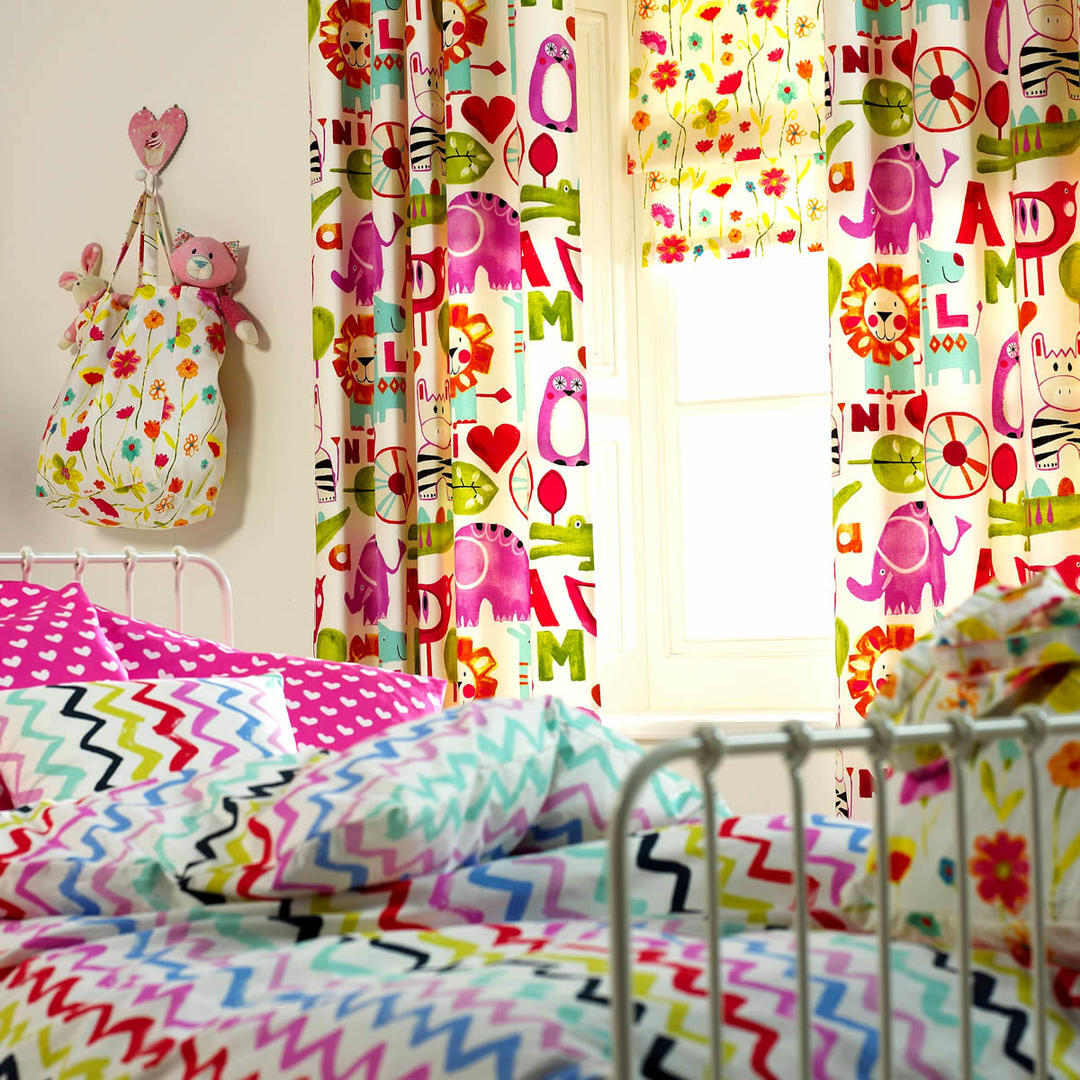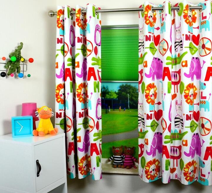 Durf jij te slapen met exotische dieren in de kamer? Dit vrolijke kindergordijn met een drukke, kleurrijke print past zowel in de jongenskamer als de meisjeskamer.