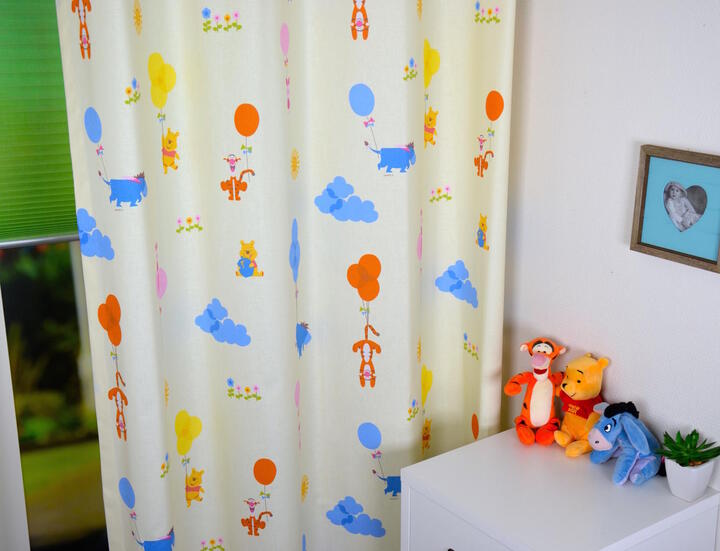 Dit gordijn 'Pooh Balloon' heeft een leuke print met daarop ballonnen. Niet alleen is daarop Winnie the Pooh zichtbaar, maar ook tijgertje & knorretje.