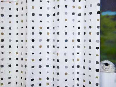 Houd je van kleur, maar op een subtiele manier? Dan is dit gordijn iets voor jou! Vele kleurvlakjes sieren het gordijn, met als inspiratie een creatief schilderspalet. De gekozen tinten volgen elkaar harmonieus op en daardoor kan dit gordijn uitstekend tot de grond geconfectioneerd worden. Het blijft een evenwichtig en toch speels geheel. De ondergrond is warm wit en de stof mooi royaal dicht geweven. Dat ziet er kwalitatief héél goed uit! Voor een donkere slaapkamer kan je het gordijn desgewenst laten voeren. Leverbaar in 5 kleurpaletten, dus jouw voorkeur zit er zeker bij.