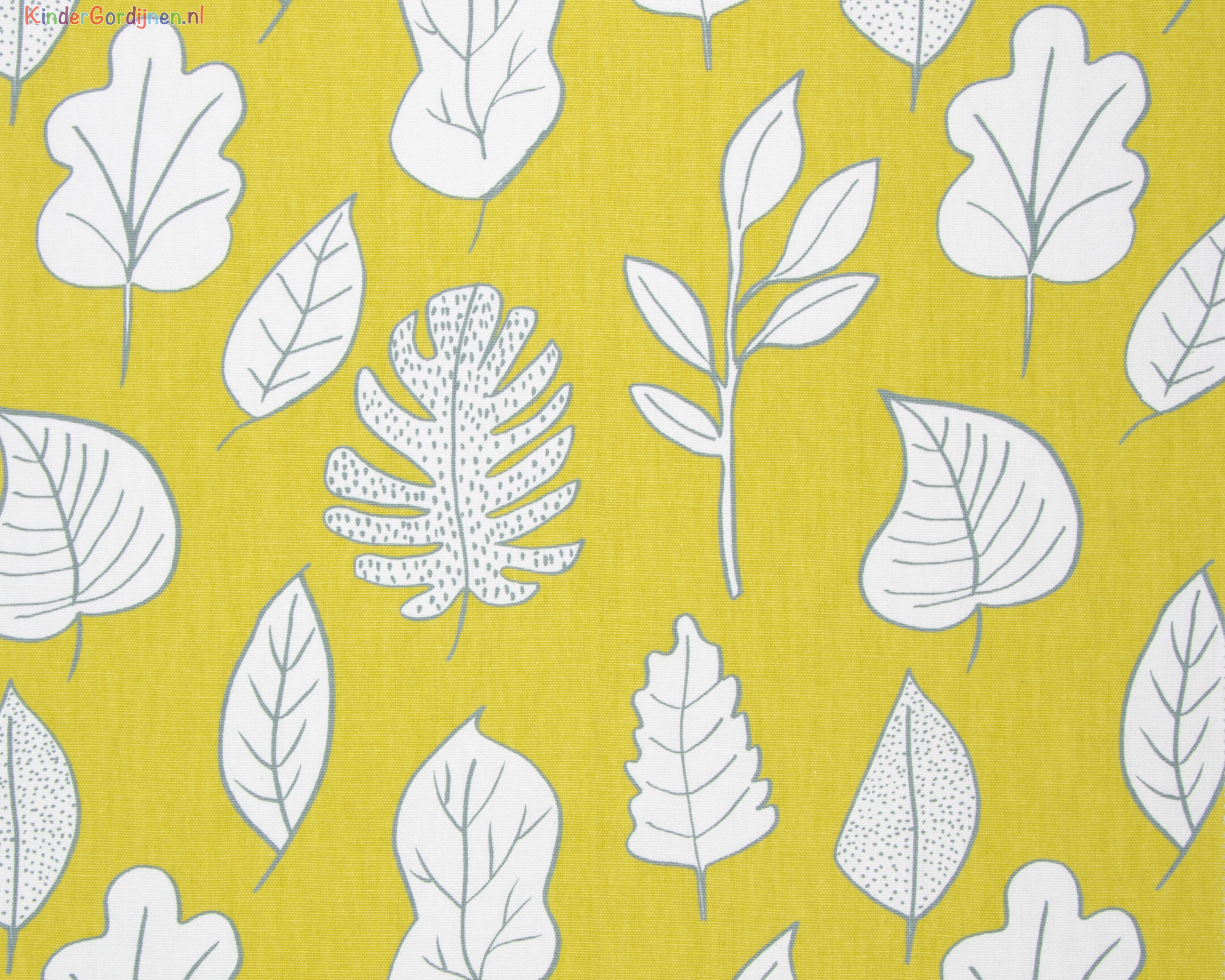 Rustig gordijn voor de kinderkamer met een print van bladeren.