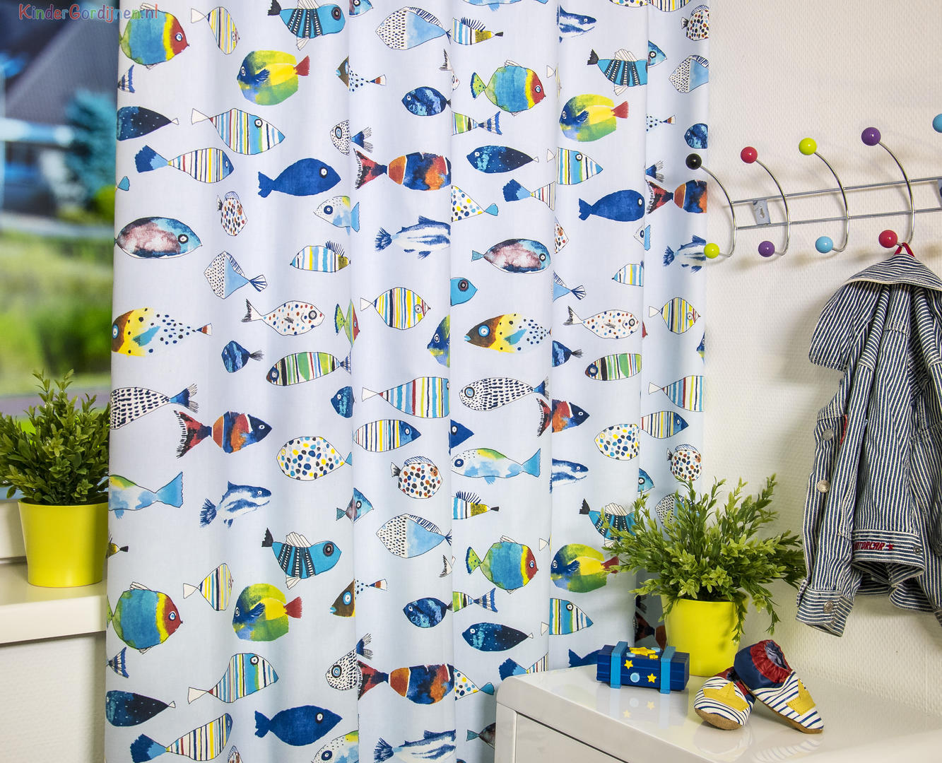 Deze gordijnstof met de naam Fishing is gemaakt van de beste materialen waardoor het gordijn mooi in de plooi valt.