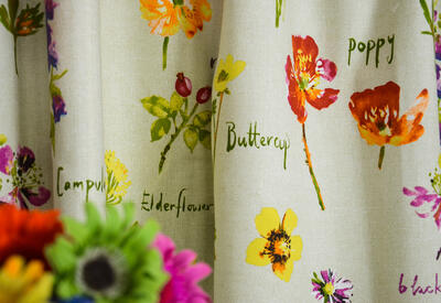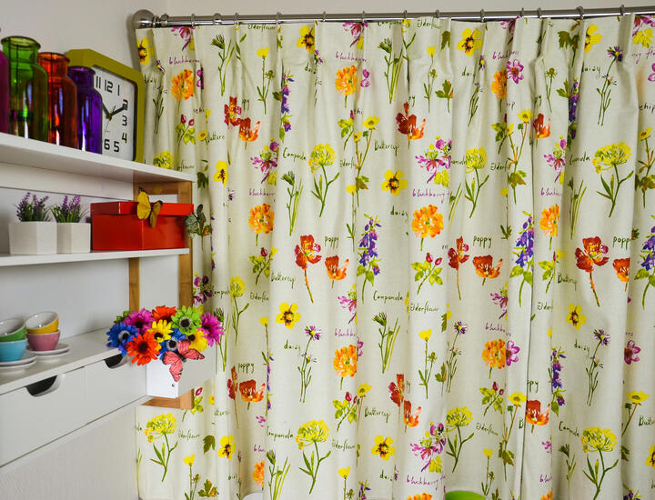 Een geurig veldboeket lijkt op puur linnen te zijn afgebeeld. Prachtige bloemen sieren jouw raam! Dit gordijn heeft die héérlijke landelijke uitstraling. De stof is van mooie, matte katoen gemaakt, dat is minder krimp- & verkleurgevoelig dan puur linnen. De bloemen variëren qua grootte van 10 tot 20 cm. Uitstekend te combineren met andere natuurlijke materialen zoals hout, sisal, riet & rotan. Alleen voor verduistering nog even extra laten voeren.