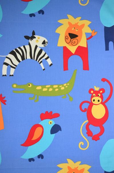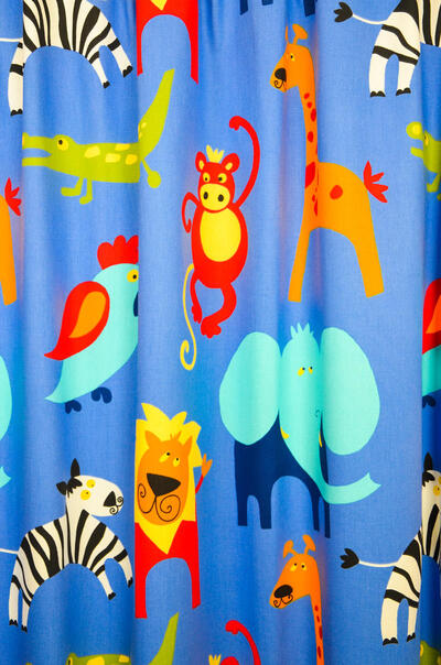 Super gave BONTE peuter- kleutergordijnen! Van krokodil tot zebra, deze dieren komen je kamer gegarandeerd opvrolijken. Meneer leeuw is 25 cm groot en mevrouw olifant zelfs nog groter. Door het royale patroon kan dit gordijn uitstekend tot de grond gemaakt worden. De dieren zijn gedrukt op sportieve, ietwat ruwe katoen en desgewenst verduisterend te voeren.