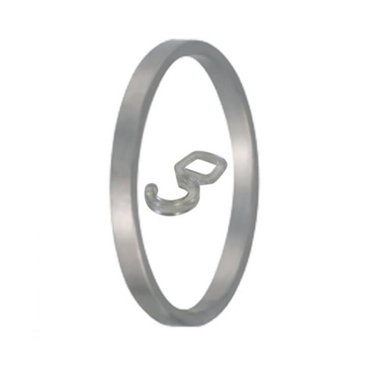Rvs voedering met oogje te gebruiken om een gordijn met gordijnhaken toch aan een roede te kunnen hangen.