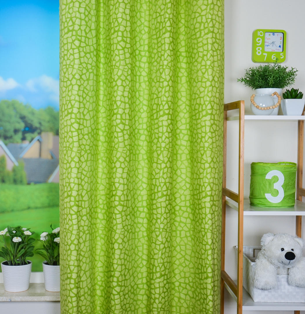 Scandinavisch wonen is populair! Minimalistisch, grafische vormen en tijdloos. Je ziet hier een print met als inspiratiebron: de natuur, is het schildpad of giraffe? Wat denk jij? De print is gedrukt op fraai, mat geweven katoen en poederig groen van kleur. Uitstekend te combineren met kiezel kleuren en andere warm grijzen. Ook met wit een fris & contrasterend effect. Voor extra verduistering even laten voeren.