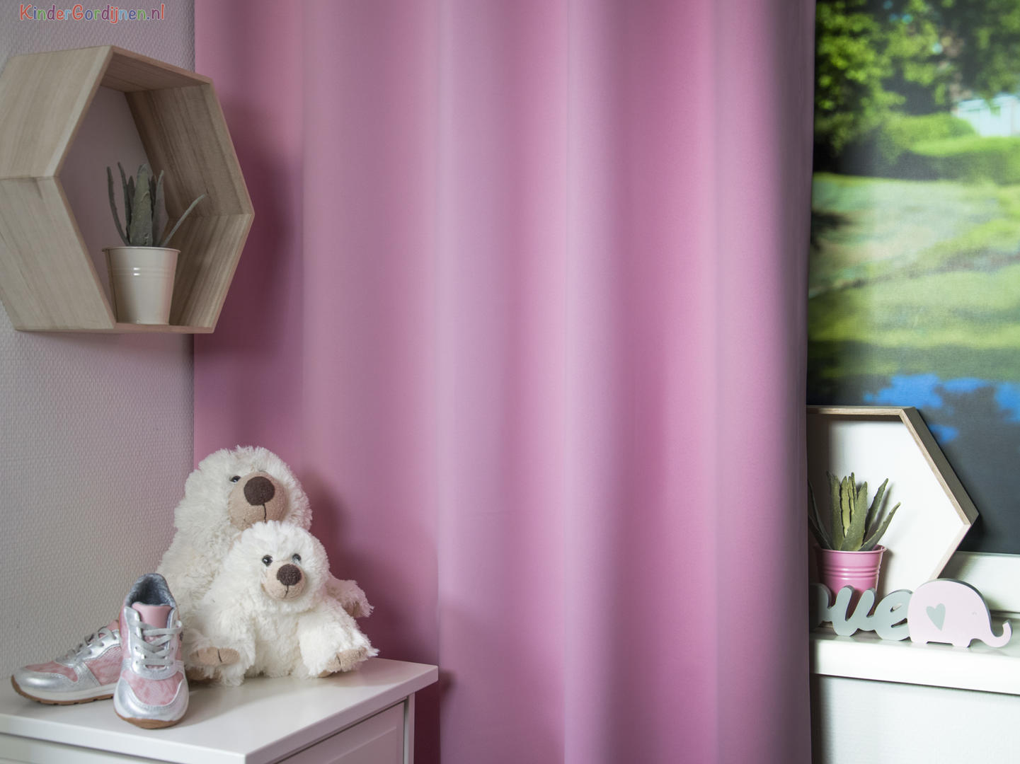 Roze is lief en zacht, een kleur die je kamer opfleurt tot een vrolijke kinderkamer. Deze stof komt uit de collectie Peyton. Dit is een verduisterende stof die bijna geen licht doorlaat. Hierdoor kun je heerlijk uitslapen.