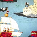 Avontuurlijk piratengordijn vol schepen, schatten en kastelen voor de kleine ontdekkingsreizigers. Verkrijgbaar in drie verschillende kleuren.