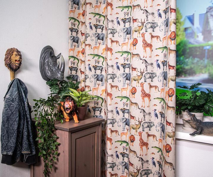 Deze gordijnstof met de naam The Wild is gemaakt van de beste materialen waardoor het gordijn mooi in de plooi valt.
