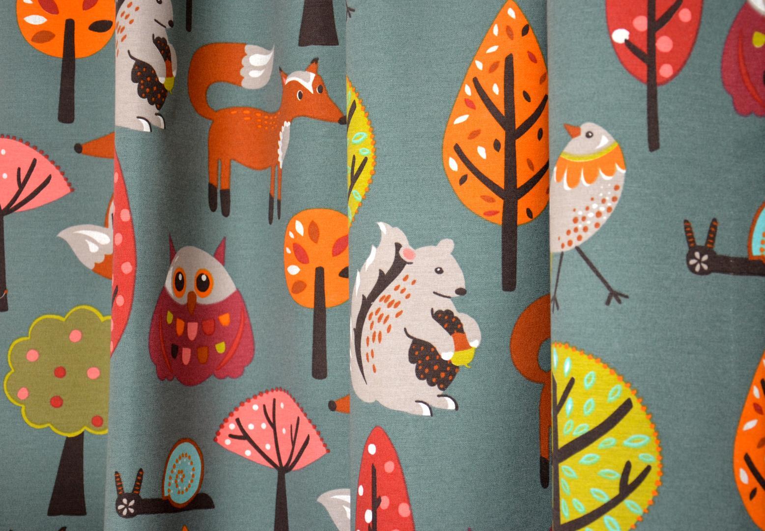 Wat een fraai nostalgisch gordijn met afbeeldingen uit vervlogen tijden! Vogel, eekhoorn en vosje zijn allemaal bosdieren uit een gezellige knusse periode. Deze tijden kunnen bij jou herleven; samen spelletjes doen, eíndeloos tekenen of met de houten trein een fantasiewereld bouwen. De stof is leverbaar in 2 kleuren: warmgrijs als ondergrondkleur of linnenlook. Het patroon is prettig royaal, een boompje is b.v. 22 cm en het vosje 17 cm groot. Genieten van de sfeer rond de kindertijd, het is zó speciaal toch? Eventueel voor verduistering of extra kleurbehoud de stof laten voeren.