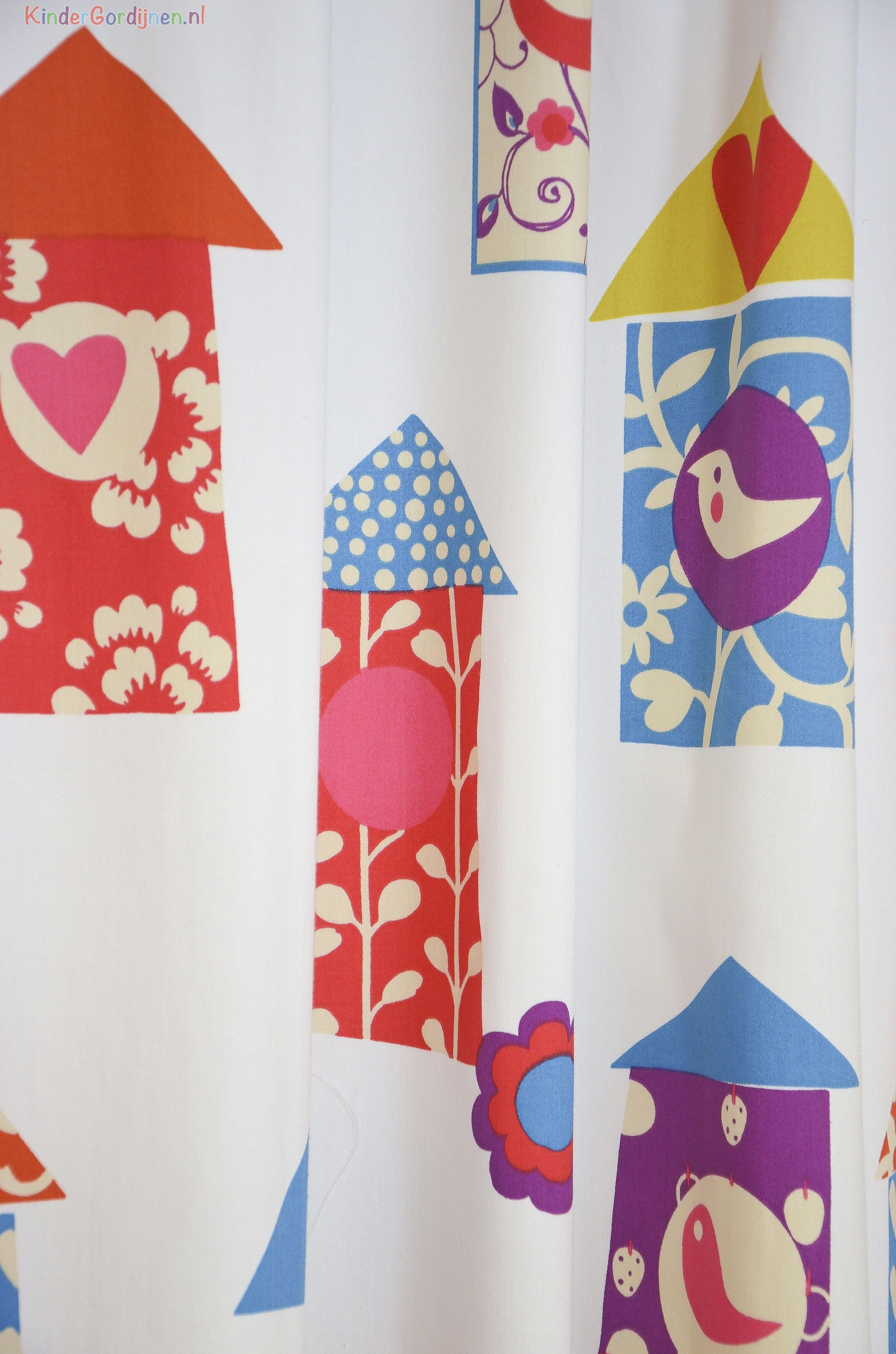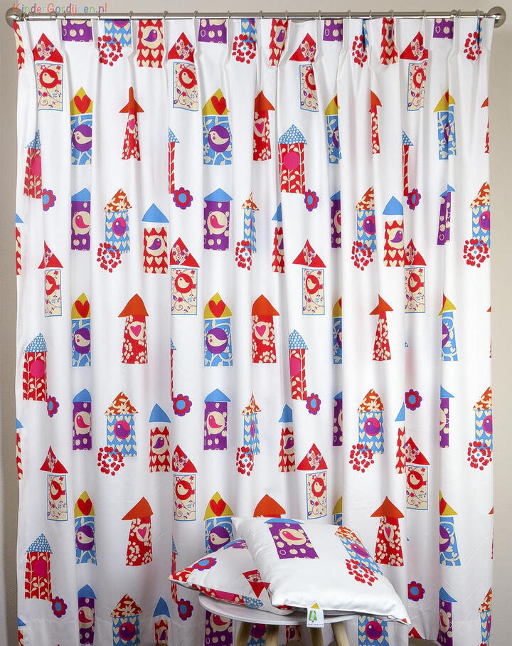 Knus gordijn met een prachtig motief van verschillende vogelkooitjes. Met deze gordijnen verandert de kinderkamer direct in een gezellige plek. De gordijnstof is samengesteld uit polyester en katoen.