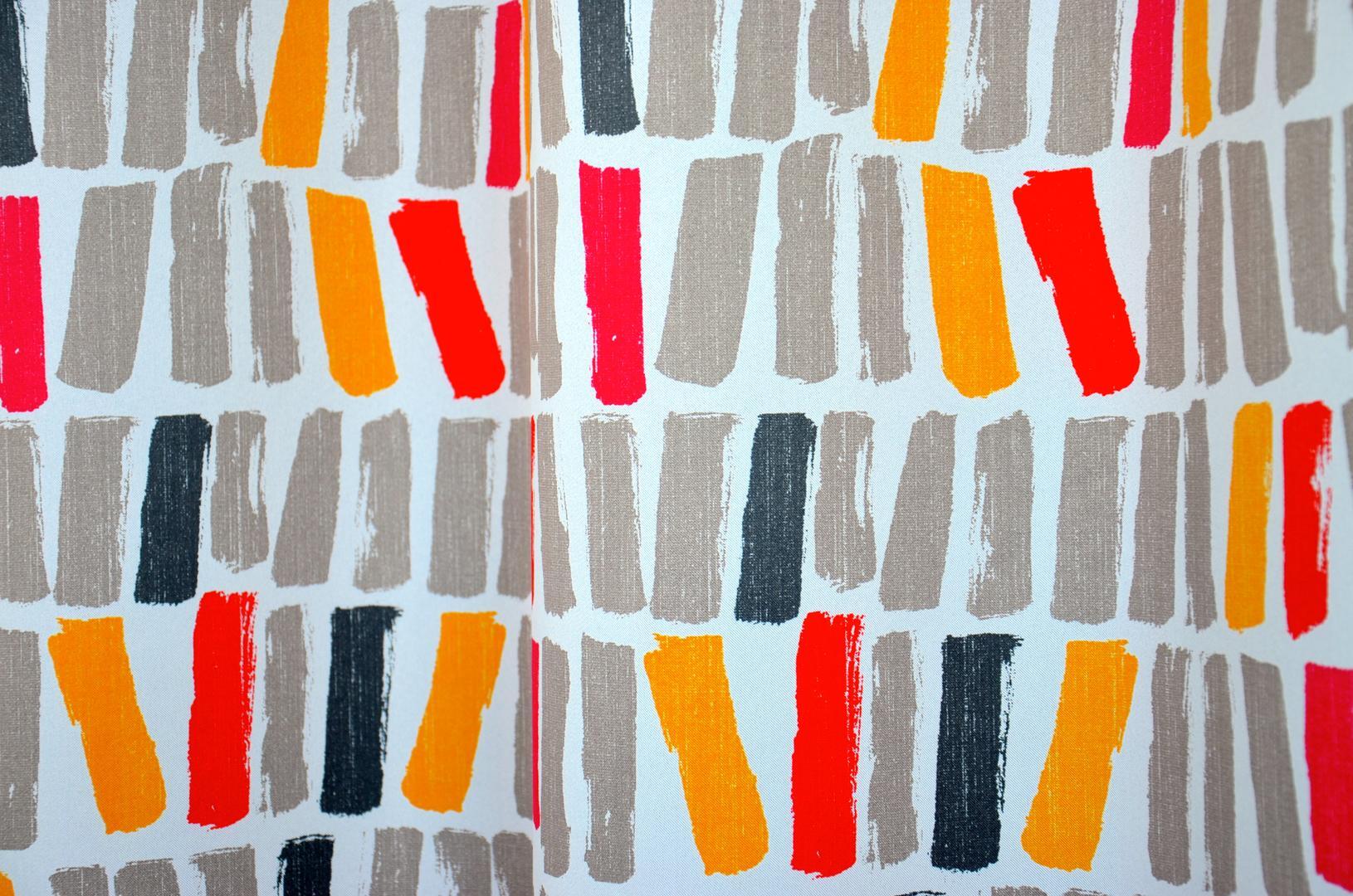 Dit is een hele bijzondere stof! De gordijnstof heeft n.l. twee mooie kanten en JIJ MAG KIEZEN! Welke zijde komt in de slaapkamer? De grote afbeelding laat de ‘Short Strokes ‘ binnen zien. Dat zijn kleurstrepen van 7 cm hoog. De achterzijde is dan gestreept. Wil je die strepen juist binnen (long strokes) dan wordt de stof precies andersom gemaakt. Even de gewenste voorzijde aanklikken. De ondergrondkleur is warm grijs en de stof heeft een behoorlijk donkermakend effect!